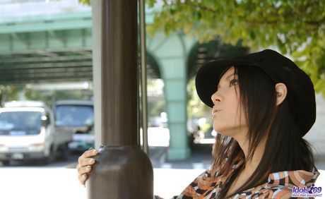 Idols 69: Lovely Asian babe shows off her big tits with a smile while awaiting her date