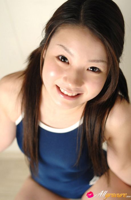 All Gravure: Misaki Asian babe in swimming suit jumps with slit on big ball