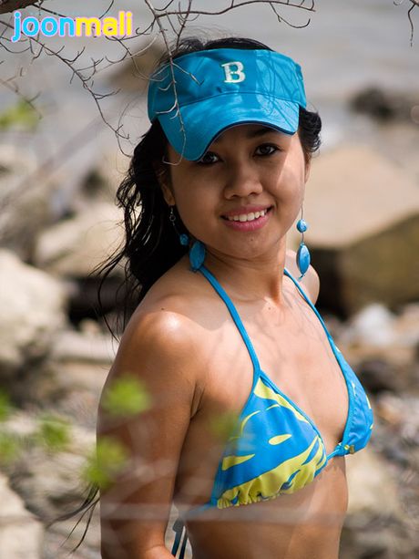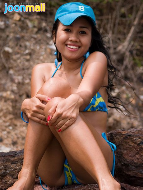 Joon Mali: Petite Asian Joon slips small hand into teal bikini bottoms