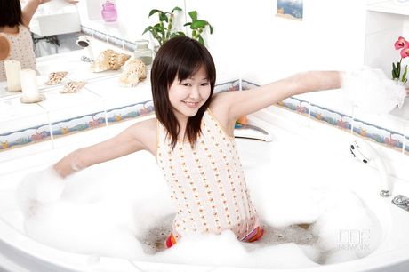 Euro Teen Erotica: Rangy oriental dark-haired teen Aliona showing tiny tits and pussy in shower