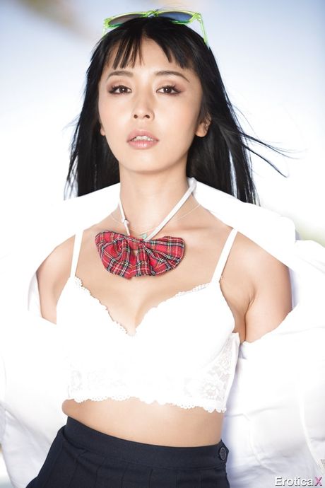 SchoolGirls HD: Sana Anju Asian fucks herself with stick she licks between boobs