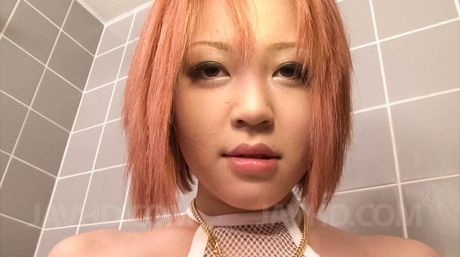 AV Tits: SARA Asian teases her big cans and pussy with shower over fishnet