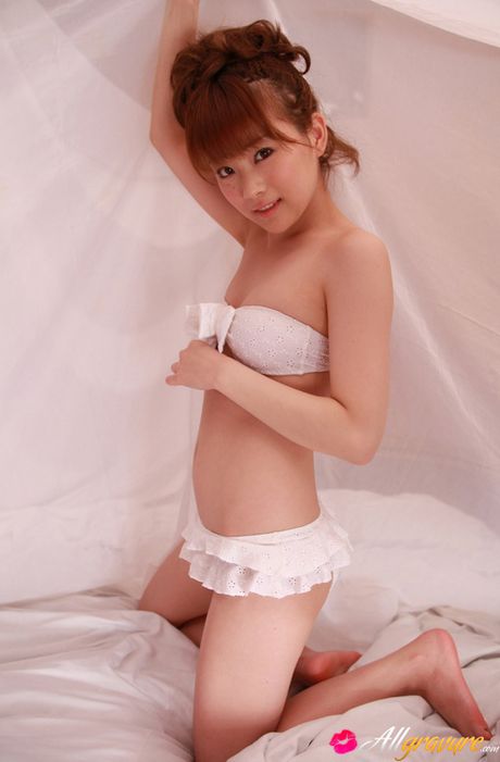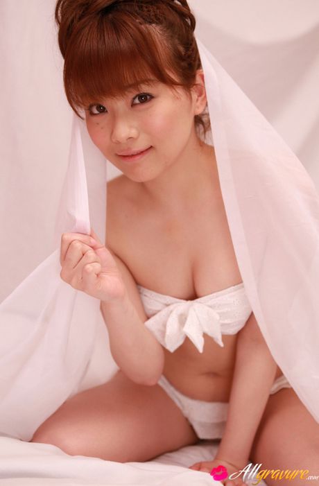 All Gravure: Satomi Shigemori Asian in white lingerie plays with bride veil