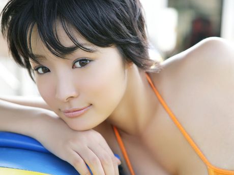 All Gravure: Seductive asian babe with small perky breasts in a pink bikini