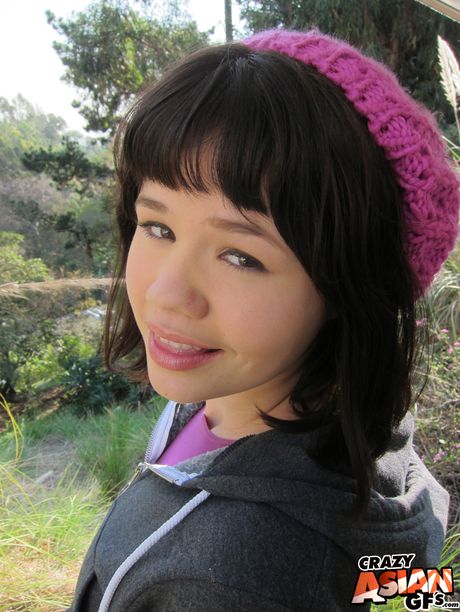 Crazy Asian GFs: Sexy oriental brunette teen Yhivi in fancy shorts exhibits tiny tits and hot ass outdoor