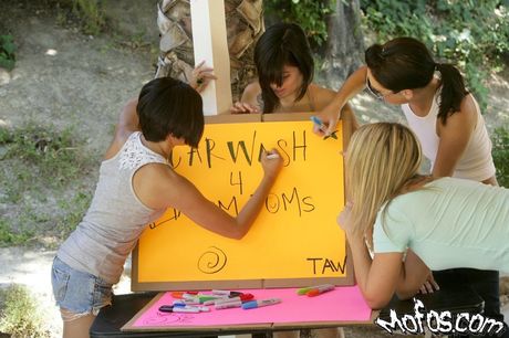 Teens At Work: Shapely beauties Jaelyn Fox and Jessica Valentino exposing hot bodies outside