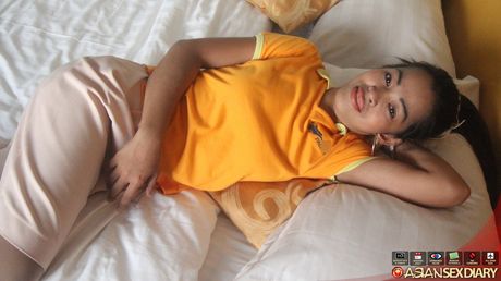 Asian Sex Diary: Skinny Asian teen Airlady gets her pussy licked and dicked by a horny guy