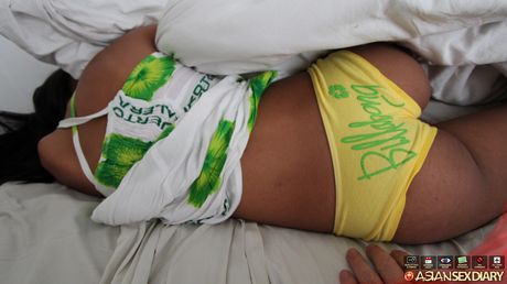 Asian Sex Diary: Skinny Asian teen Ashley shows her tiny tits and toys her pussy