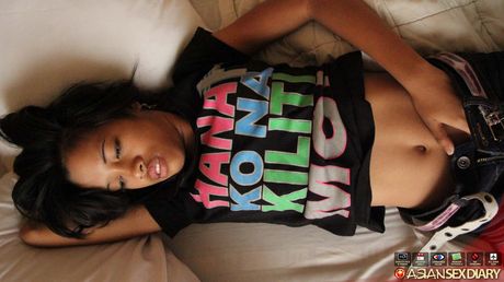 Asian Sex Diary: Skinny Asian teen Jenelyn strips and rides a big dick in a hot solo show