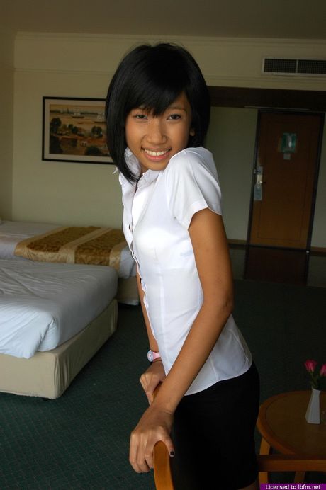 Barfine2cash: Skinny Asian teen strips and reveals her tiny tits and pussy