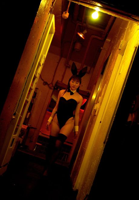 Idols 69: Slutty Asian playboy bunny gets her pussy buzzed with a vibrator from behind