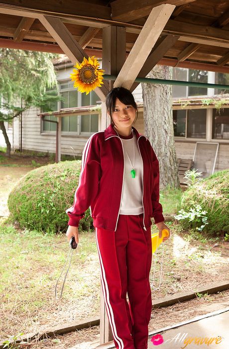 All Gravure: Tomoe Asian babe takes sports pants off and exposes ass in garden